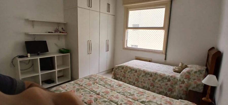 Apartamento amplo de dois dormitórios com dependência com armários e ar condicionado. Imóvel muito bem conservado e com entrada social e de serviço. Localizado a uma quadra da praia e próximo do shopping e a duas quadras do Gonzaga. Tem elevador, portaria e garagem. Marque sua visita antes que seja tarde. 13981182086.