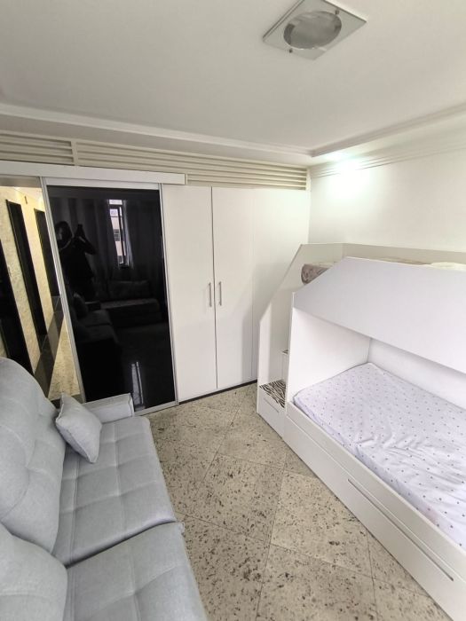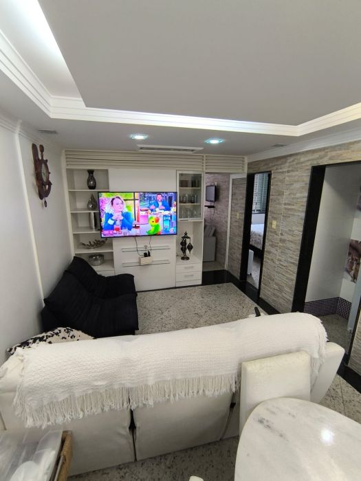 Dois dormitórios mobiliado em frente à praia. Portaria 24hs.