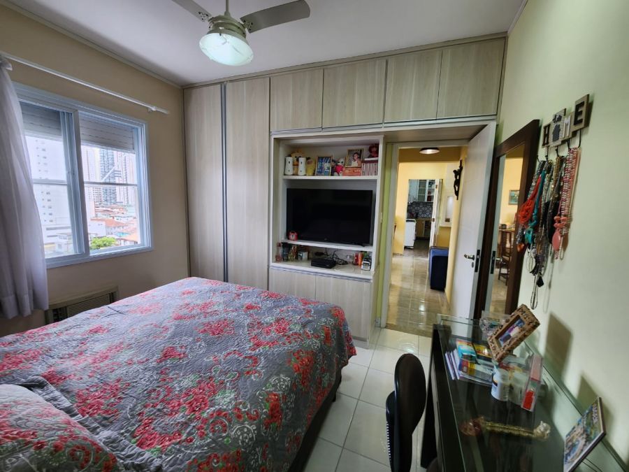 Apartamento de dois dormitorios, sendo que um deles com armários planejados. Banheiro social e na área de serviço, que no momento é utilizado como despensa. A sala em dois ambientes é grande e espaçosa. Vista livre para o cais, conseguindo ver os navios passando e ainda tem vaga de garagem fechada. O prédio tem portaria 24 horas, elevador e bicicletário. Muito bom. Vale a pena. Marque sua visita antes que seja tarde. 1398118-2086